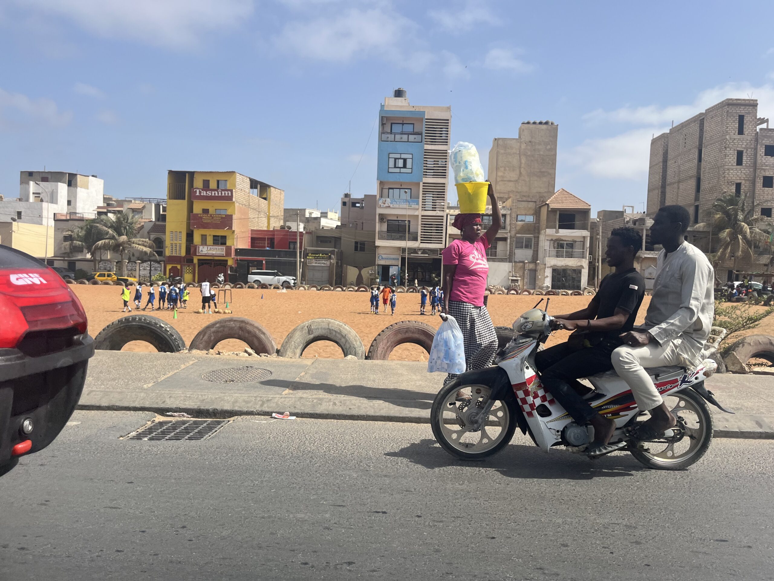 The taximan’s name is Bassirou, to friends it is Bas I hear later. He is young and strong and speaks Senegalese French, so I have to pull out all the stops. He has bad teeth and apparently never goes to the dentist. I have seen quite a few clinics, but considering the dentures, apparently it is not for everyone. It’s a shame, because he’s a nice guy. Today we have a regular driver who just waits for us when we go in somewhere. Sometimes he walks with us, which is quite convenient, because it means we get a lot less people coming at us wanting something. I ask him about everything I see and wonder about. He tells about the goats, that it will soon be a holiday and that everyone will be eating goat then, so the animals will soon be slaughtered.