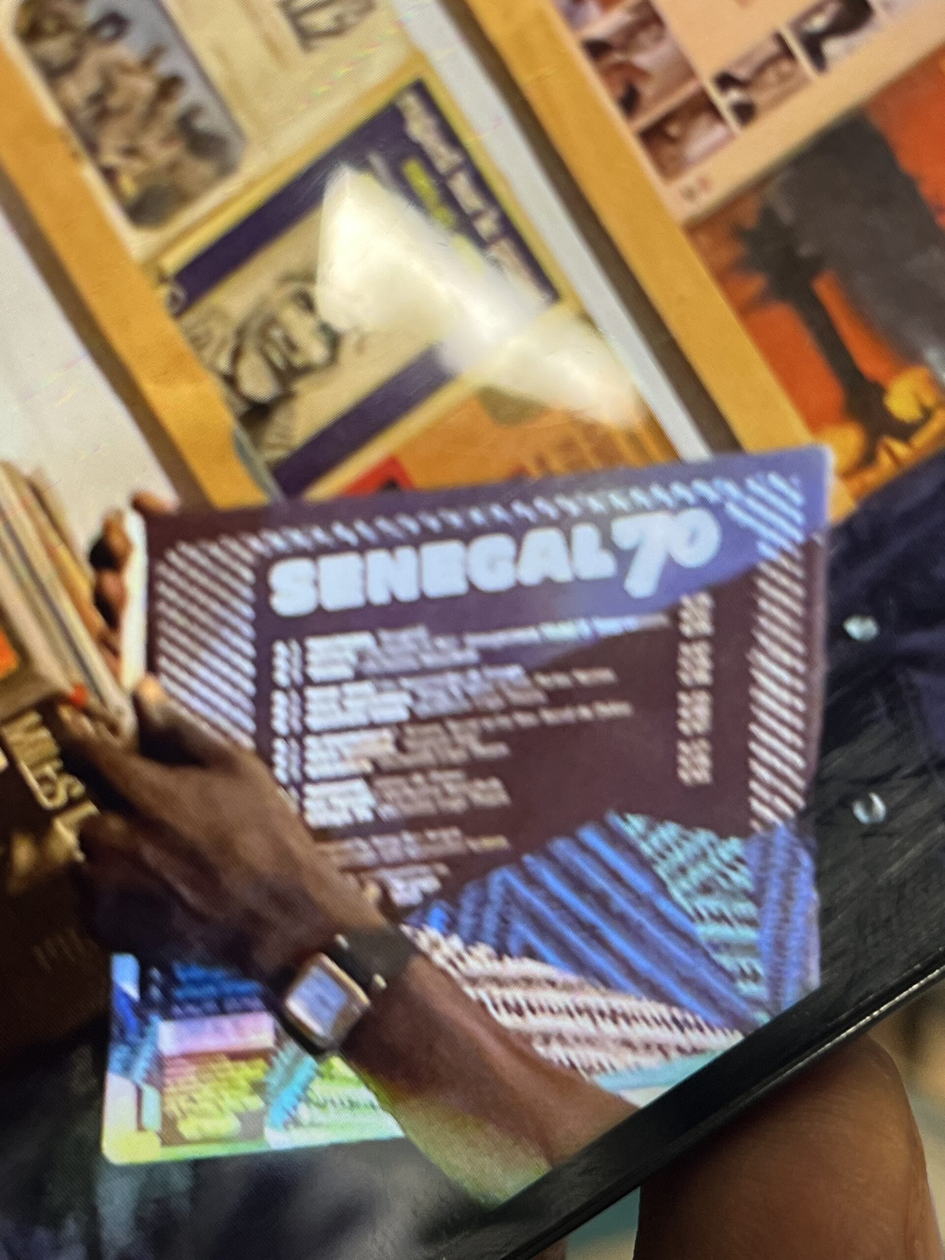 So they are not standing upright in cabinets which would allow a lot more to fit, you can easily access them and classify them, the latter is apparently not necessary, because when I ask for some, (Orchestra Baobab of course, but also Balla et Ses Balladins) he picks out a stack among a tall pile and there the titles indeed appear to be.